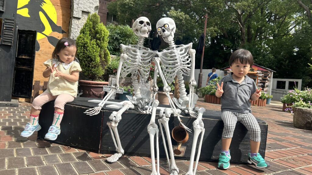 骸骨やオバケなどと一緒に写真が撮れるので、親の私が大興奮しました。